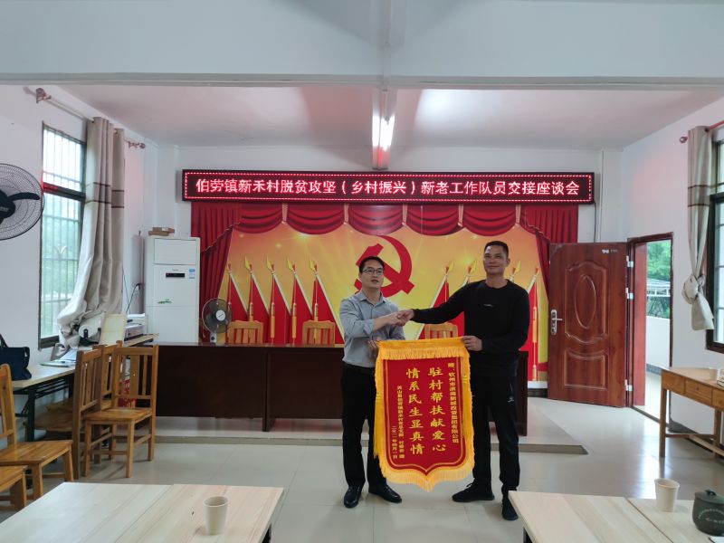 一、2021年4月25日,集團(tuán)公司與市民政局、市退役軍人局、大成鎮(zhèn)黨委領(lǐng)導(dǎo)和新派駐工作隊(duì)員一同抵達(dá)浦北縣大成鎮(zhèn)聯(lián)成村,召開了浦北縣大成鎮(zhèn)聯(lián)成村鄉(xiāng)村振興座談會(huì),座談會(huì)上對老一屆工作隊(duì)周榮正等同志的辛勤付出和成績給予了高度肯定,對新一屆工作隊(duì)梁家強(qiáng)等同志的到來表示歡迎。座談會(huì)結(jié)束后,進(jìn)行了新舊工作隊(duì)交接儀式。