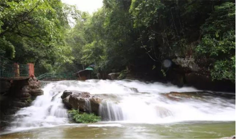 將軍潭瀑布常年傾瀉,沖擊崖下成潭,傳說此潭的得名與東漢伏波將軍馬援及欽州民族英雄劉永福息息相關,雨后周圍形成巨大的水霧和呼呼的冷風。