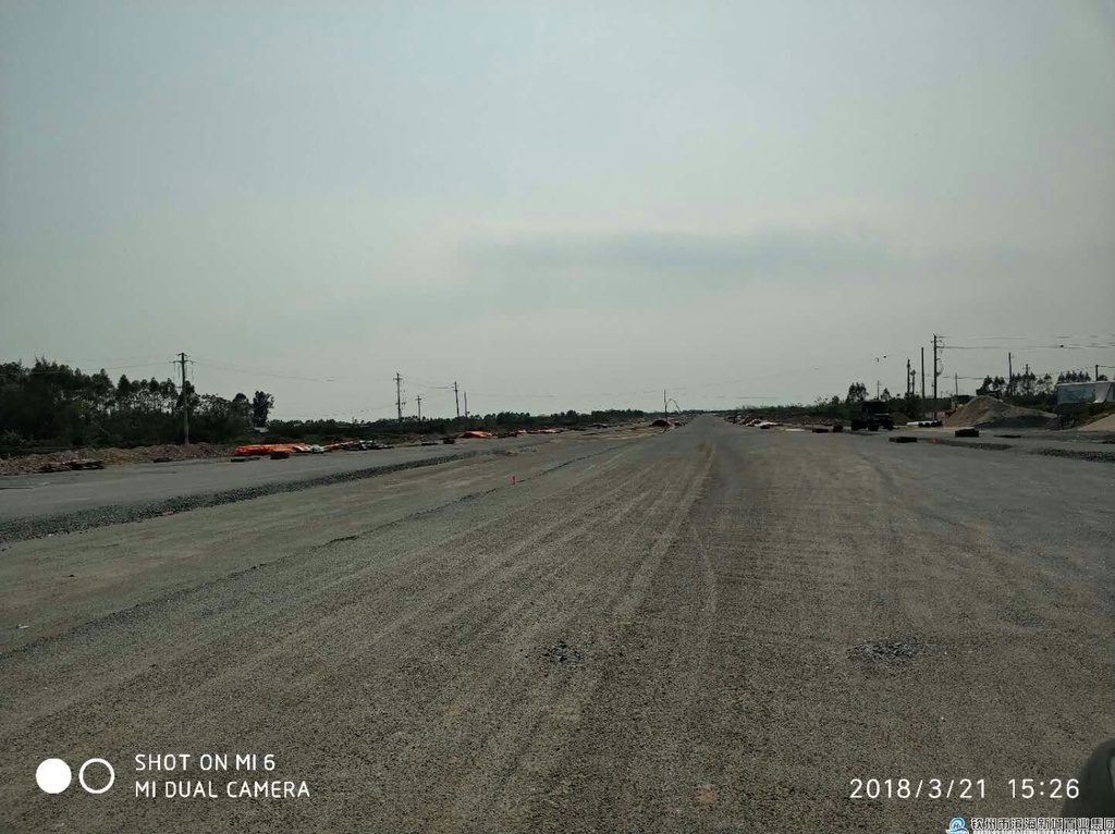 該項(xiàng)目于2017年2月22日進(jìn)場(chǎng)施工,道路約1060m,路寬60m。主要建設(shè)內(nèi)容:道路工程、交通工程、排水工程、照明工程和綠化工程等。合同價(jià)59958018.42元,工期200日歷天,行車道及非機(jī)動(dòng)車車道級(jí)配碎石鋪設(shè)約90%,k2+200及k1+900處過(guò)路管全包施工。雨、污水管網(wǎng)基本建成,行車道及非機(jī)動(dòng)車車道級(jí)配碎石鋪設(shè)約90%。施工單位中余建設(shè)集團(tuán)有限公司,監(jiān)理單位廣西益建工程建設(shè)監(jiān)理有限責(zé)任公司。