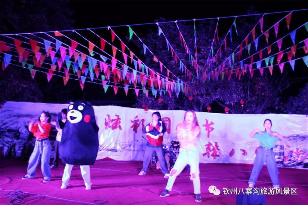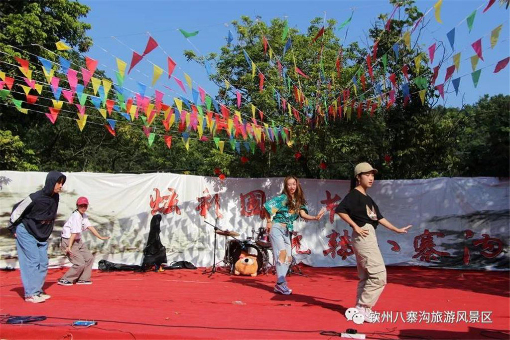 國慶期間景區(qū)舉辦以“炫彩國慶節(jié),玩轉(zhuǎn)八寨溝”為主題的系列活動受到眾多游客親睞。游客們白天可以觀看精彩歌舞文藝演出,玩真人CS運動,品嘗各種各樣的特產(chǎn)美食,學(xué)制作欽州坭興陶,體驗欽州第一漂—八寨溝森林漂流,登山徒步暢游山水,呼吸新鮮空氣,天然水潭戲水其樂無窮,整個景區(qū)一片游客如織、喜樂融融的景象。