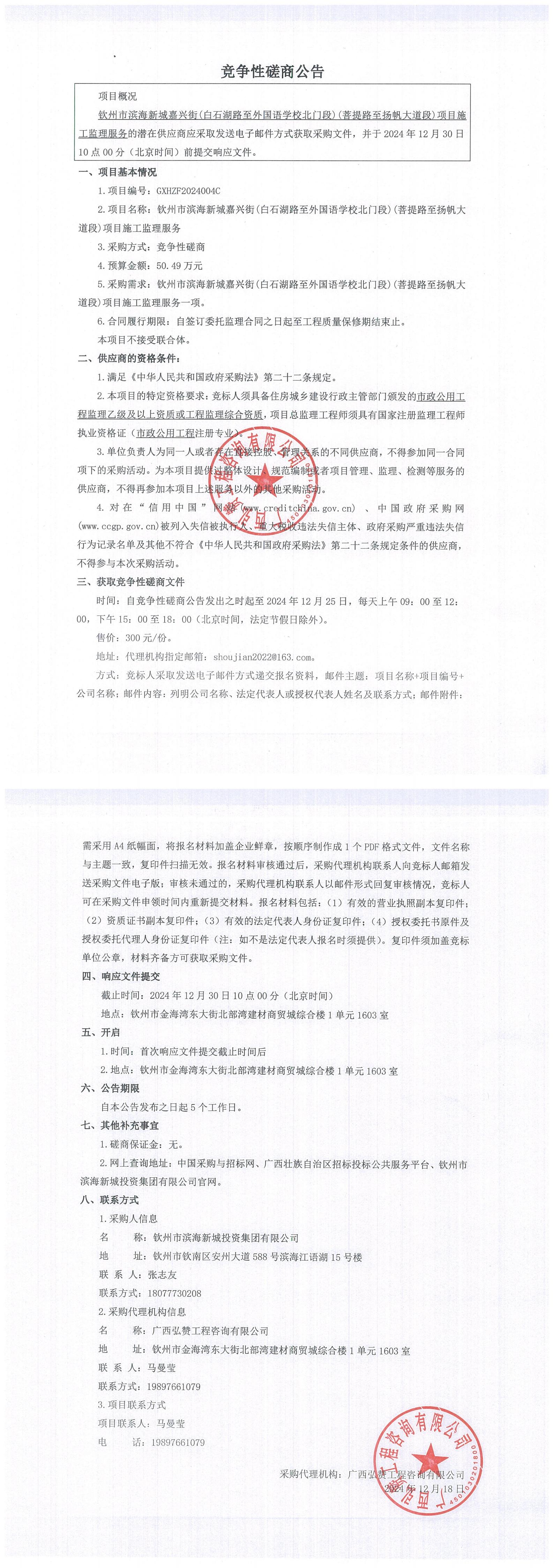 競(jìng)爭(zhēng)性磋商公告(欽州市濱海新城嘉興街(白石湖路至外國(guó)語(yǔ)學(xué)校北門段)(菩提路至揚(yáng)帆大道段)項(xiàng)目施工監(jiān)理服務(wù))