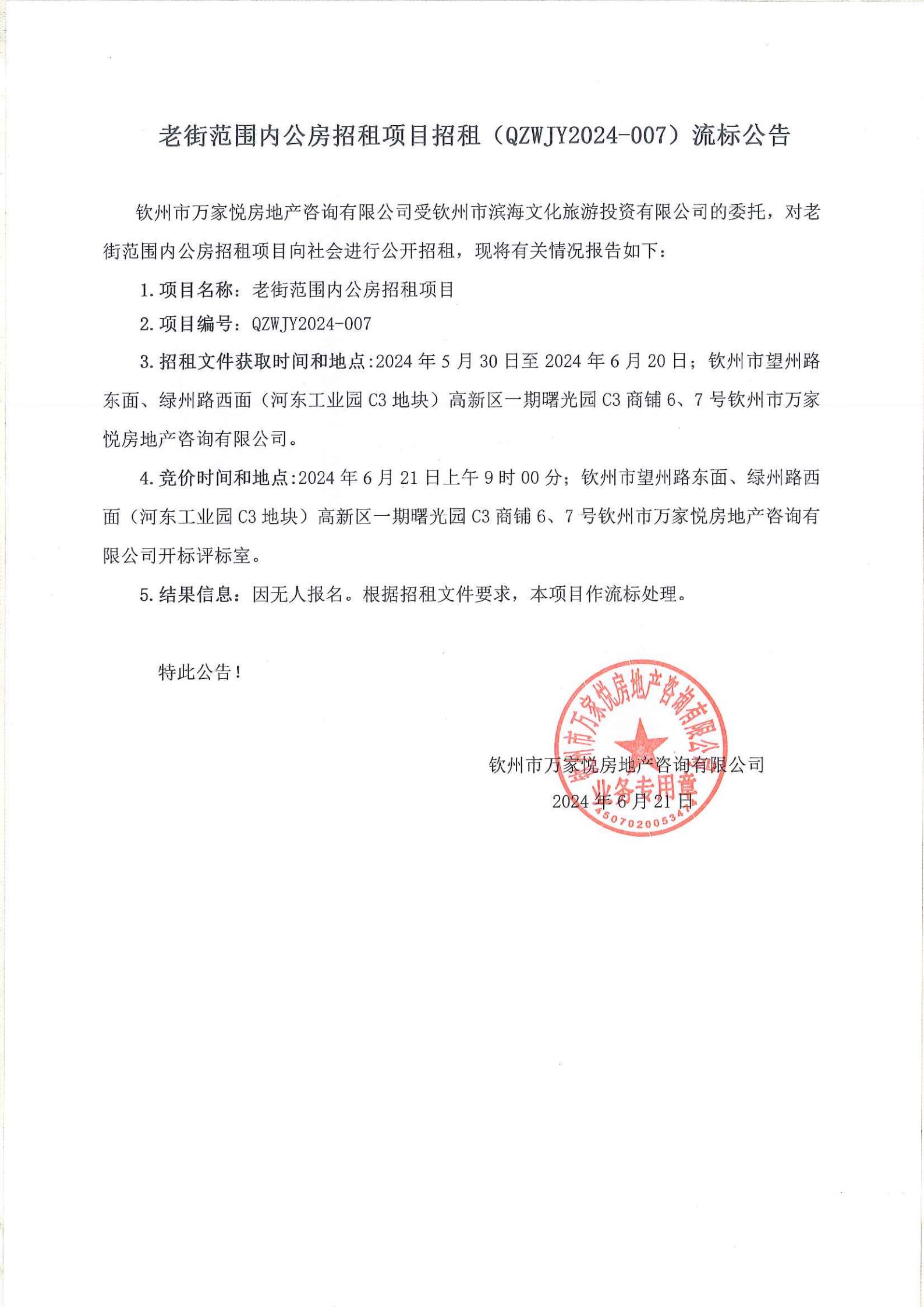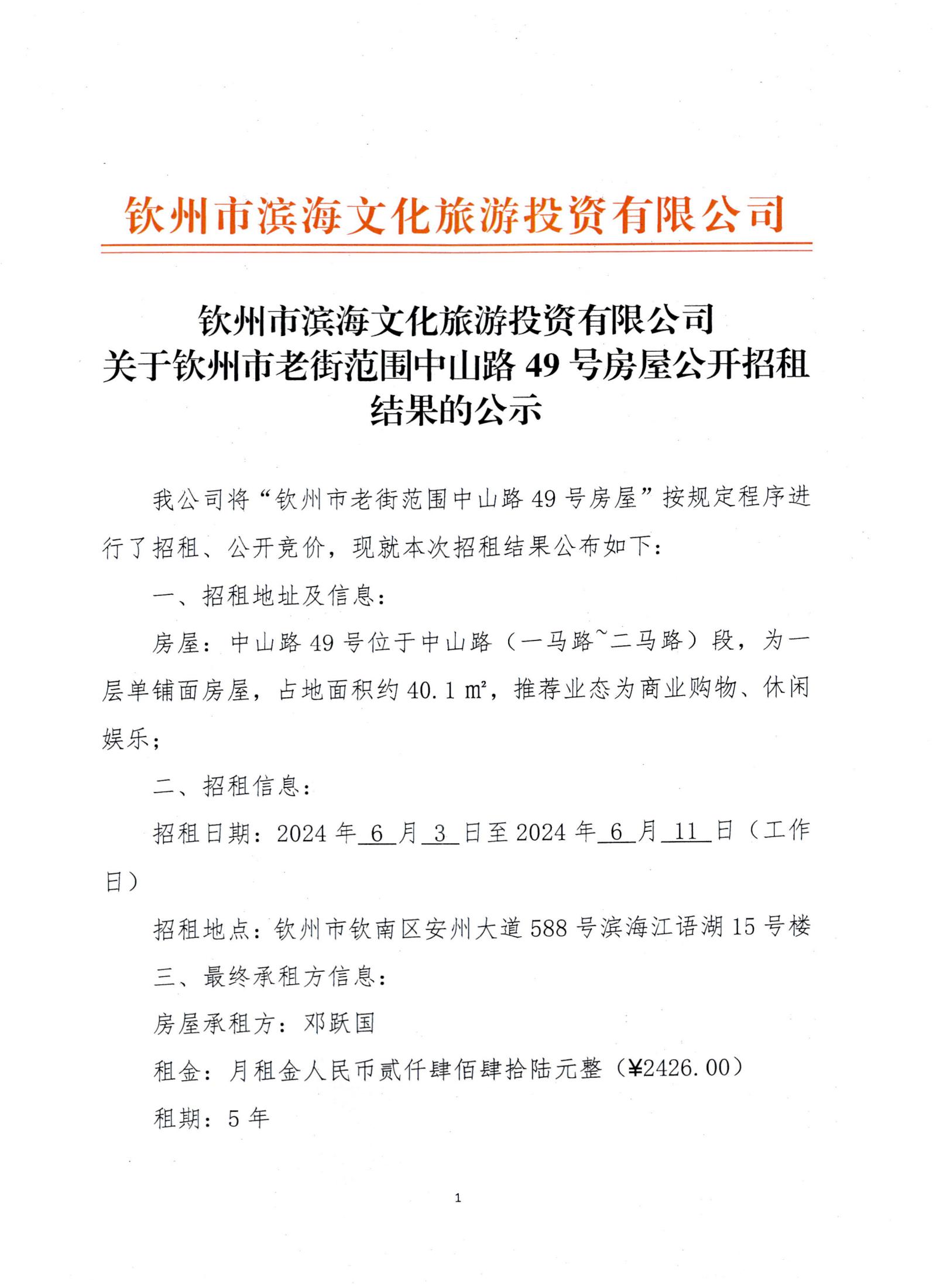 關于欽州市老街范圍中山路49號房屋公開招租結(jié)果的公示
