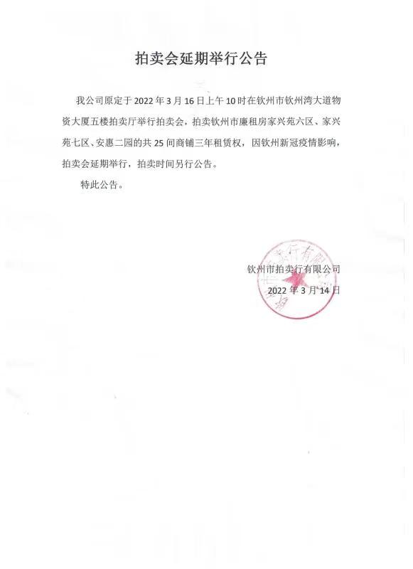 拍賣會(huì)延期舉行公告