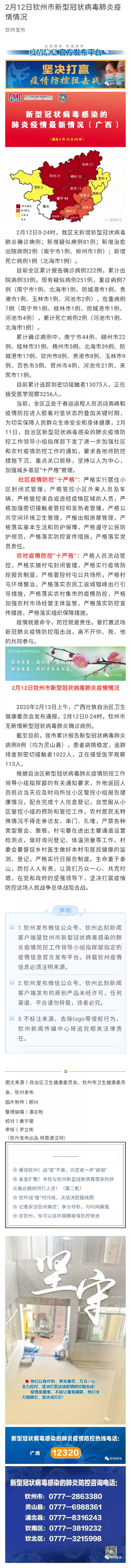 2月12日欽州市新型冠狀病毒肺炎疫情情況