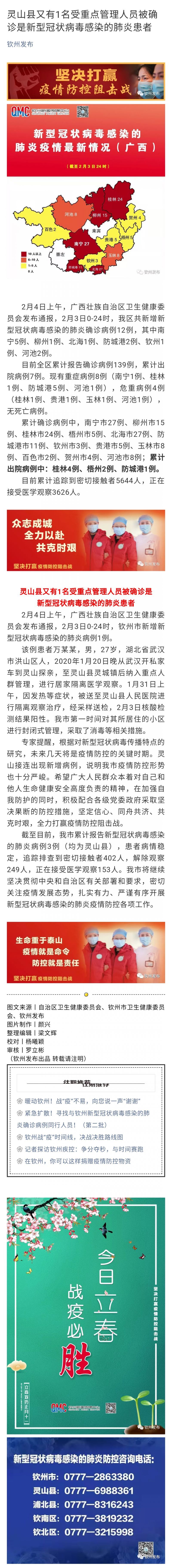 靈山縣又有1名受重點管理人員被確診是新型冠狀病毒感染的肺炎患者
