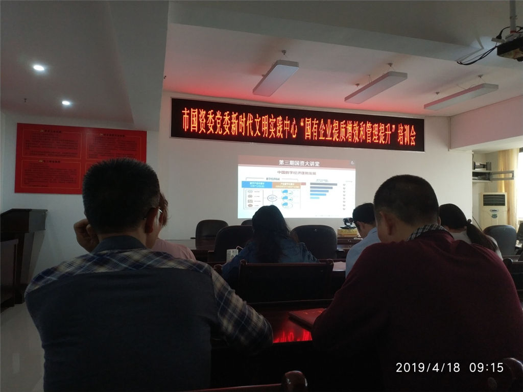 4 月 18 日 上 午 9:00 , 在 市 國 資 委 1220 會 議 室 舉 行 了 第 三期國資大講壇視頻會議, 會議主題為國有企業(yè)提質(zhì)增效管 理和提升。