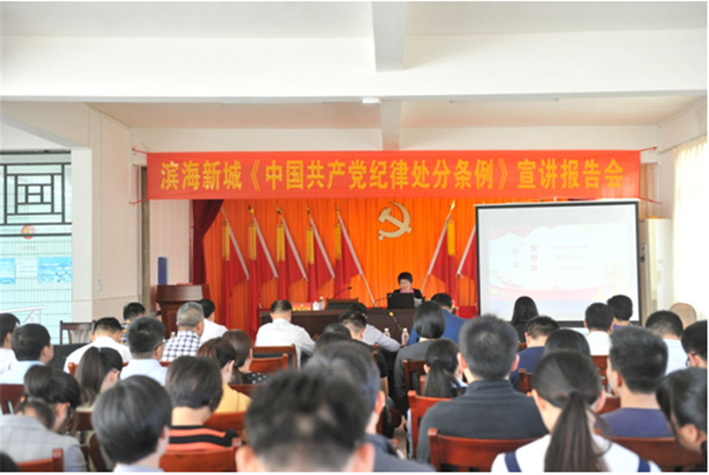 11月28日下午,市紀(jì)委駐市國資委紀(jì)檢組到市濱海新城召開《中國共產(chǎn)黨紀(jì)律處分條例》宣講報(bào)告會(huì),對新修訂的《中國共產(chǎn)黨紀(jì)律處分條例》進(jìn)行了專題宣講。綜合監(jiān)督單位市濱海新城管委、市濱海置業(yè)集團(tuán)公司共70多名黨員領(lǐng)導(dǎo)干部聽取了宣講。