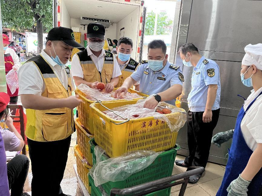 在保供工作進(jìn)行中,濱海供應(yīng)鏈公司始終堅(jiān)持做到:一、主動(dòng)接受行業(yè)主管部門的檢查,積極與市直和南北區(qū)市場(chǎng)監(jiān)管部門保持溝通,按要求做好質(zhì)量把控、索證索票、留樣檢測(cè)等工作;二、從“食材安全衛(wèi)生、配送安全準(zhǔn)時(shí)”為理念,以“五保障”協(xié)議做抓手,工作人員前置農(nóng)產(chǎn)品基地和源頭供應(yīng)商,確保食材質(zhì)量;三、安排食材檢測(cè)員貫徹落實(shí)索證索票工作,嚴(yán)格開展檢測(cè)工作,杜絕三無、有毒有害、過期變質(zhì)等不良品外流,對(duì)配送的食材共開展了306批次食材快檢,確保合格率達(dá)到100%;四、以黨建促業(yè)務(wù),充分發(fā)揮黨支部戰(zhàn)斗堡壘作用,以黨員先鋒隊(duì)作為主力軍前置各考點(diǎn),確保食材保質(zhì)保量以及準(zhǔn)時(shí)到校,并配合食材檢查和驗(yàn)收工作;五、充分利用食安平臺(tái)明廚亮灶系統(tǒng),有力監(jiān)控跟蹤保障食材安全配送,同時(shí)強(qiáng)調(diào)產(chǎn)品溯源,加強(qiáng)校企聯(lián)動(dòng),做好應(yīng)急準(zhǔn)備。