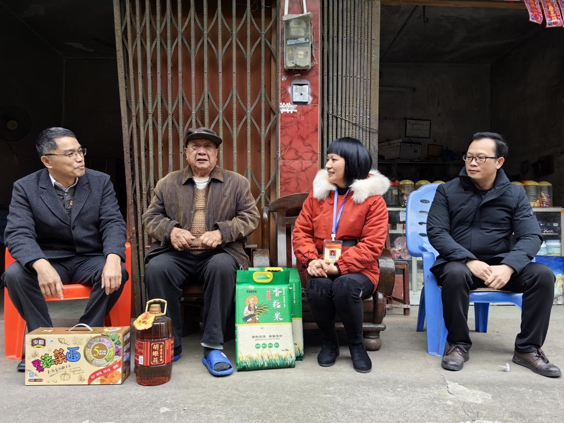 集團(tuán)公司總工程師廖相榮(右二)慰問(wèn)老黨員干部尤建菊(右三)