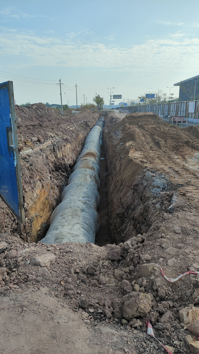 嘉興街項目:安州大道至白石湖路段于今年11月初組織施工單位復工復產(chǎn),已完成道路雜草清除、抽排積水、管廊洞口封堵并回填等工作,現(xiàn)正進行道路填土和壓實、雨污水管道開挖埋設、過路綜合管道埋設、道路級配碎石鋪裝以及污水提升泵站的污水管埋設、圍墻基礎開挖、泵房磚墻砌筑等工作。外校北門至菩提路段于11月1日進場施工,目前已完成K3+050-K3+100、K2+800-k3+020路段的清淤,正在進行土方回填,南側(cè)污水管已安裝約40米管道。