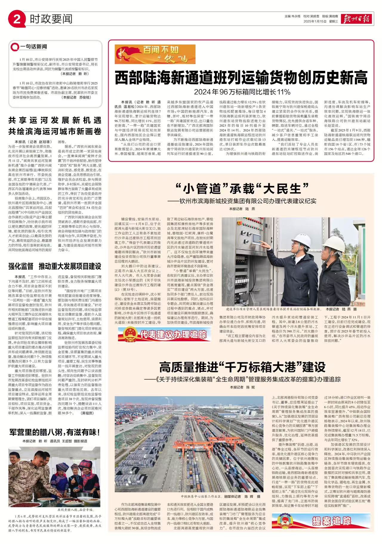 1月15日,《欽州日?qǐng)?bào)》以《“小管道”承載“大民生”》為題報(bào)道欽州市濱海新城投資集團(tuán)有限公司辦理代表建議紀(jì)實(shí)。全文如下。
