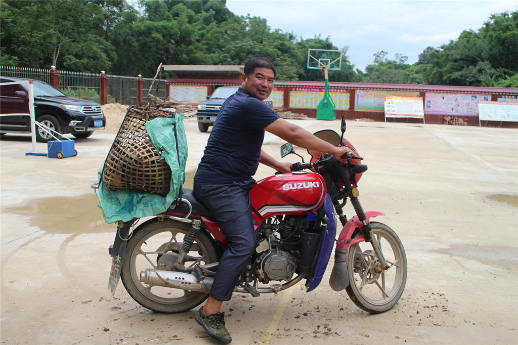 (圖為貧困戶將雞苗分裝完畢并滿心歡喜載回家)