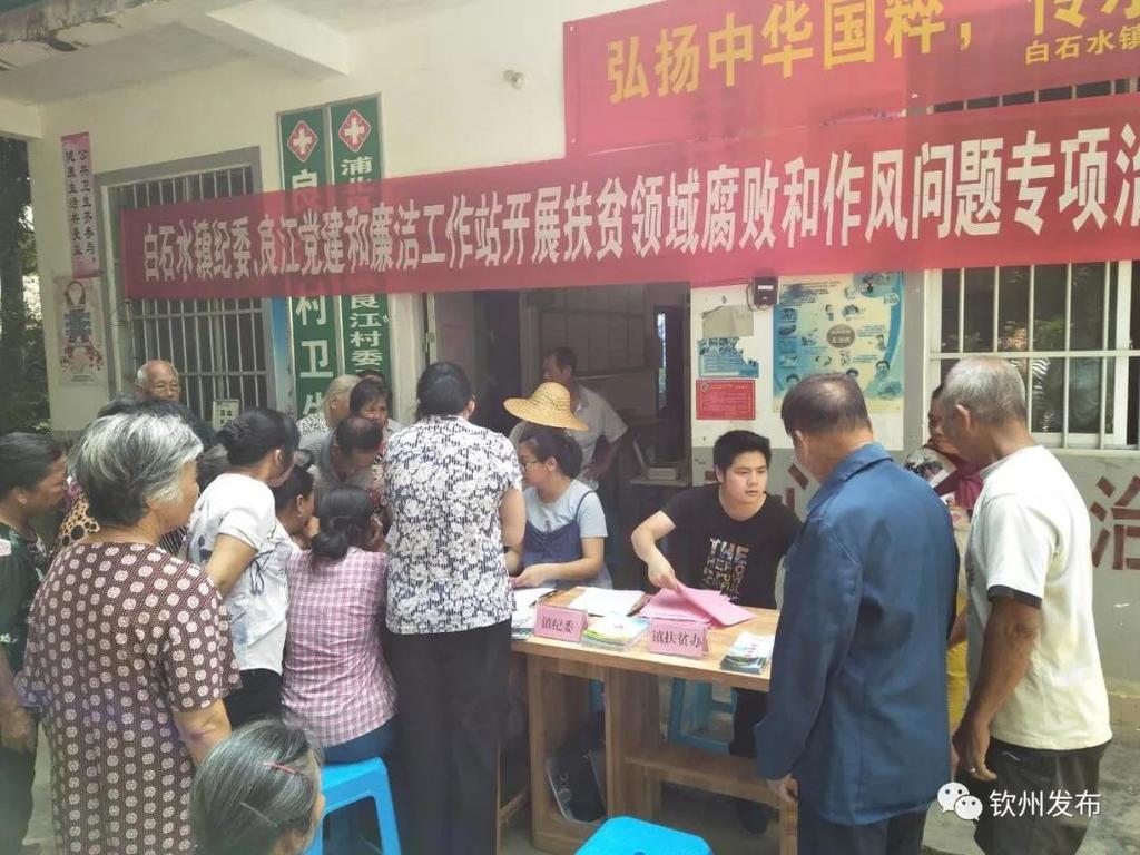 ▲黨建和廉潔工作站工作人員在良江村開(kāi)展扶貧領(lǐng)域腐敗和作風(fēng)問(wèn)題專(zhuān)項(xiàng)治理公開(kāi)大接訪活動(dòng)