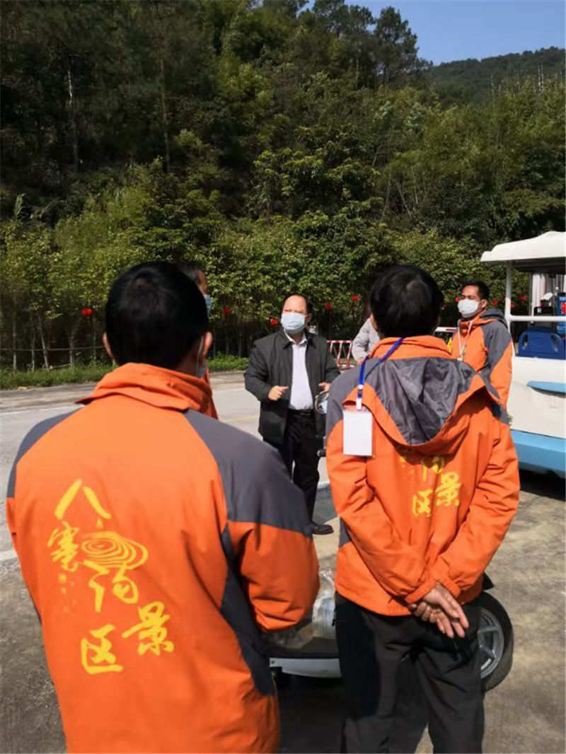 二、為進一步傳達市委、市人民政府有關(guān)疫情防控工作的相關(guān)文件精神,公司領(lǐng)導(dǎo)前往景區(qū)現(xiàn)場指導(dǎo)疫情防控工作,特別強調(diào)當(dāng)前防控工作形式嚴峻,景區(qū)員工要增強緊迫感和責(zé)任感,切實加強景區(qū)人員出入管理及消毒清潔,保障游客及公司員工的身體健康和生命安全;
