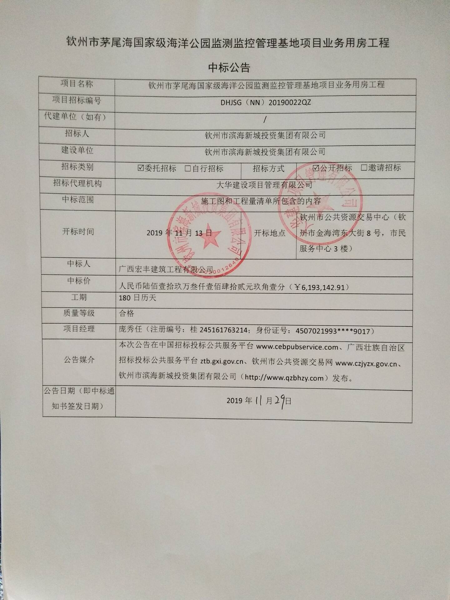 欽州市茅尾海國(guó)家級(jí)海洋公園監(jiān)測(cè)監(jiān)控管理基地項(xiàng)目業(yè)務(wù)用房工程-中標(biāo)公告