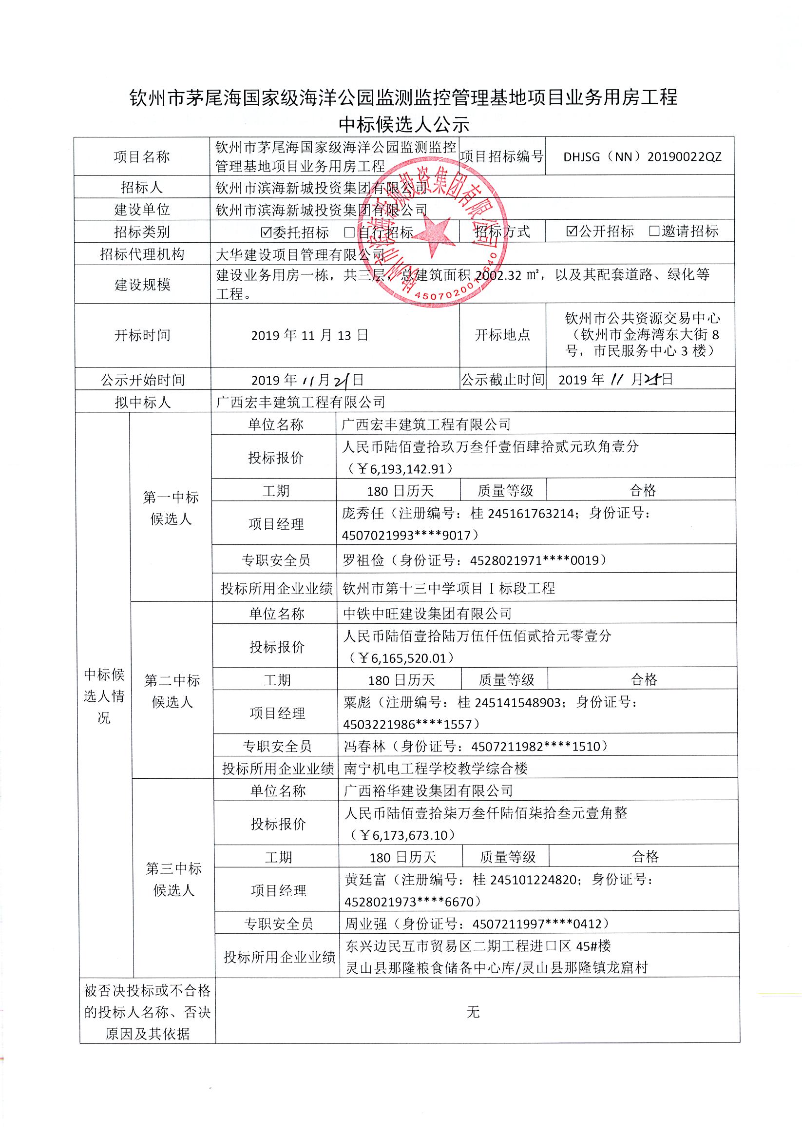 欽州市茅尾海國(guó)家級(jí)海洋公園監(jiān)測(cè)監(jiān)控管理基地項(xiàng)目業(yè)務(wù)用房工程中標(biāo)候選人公示