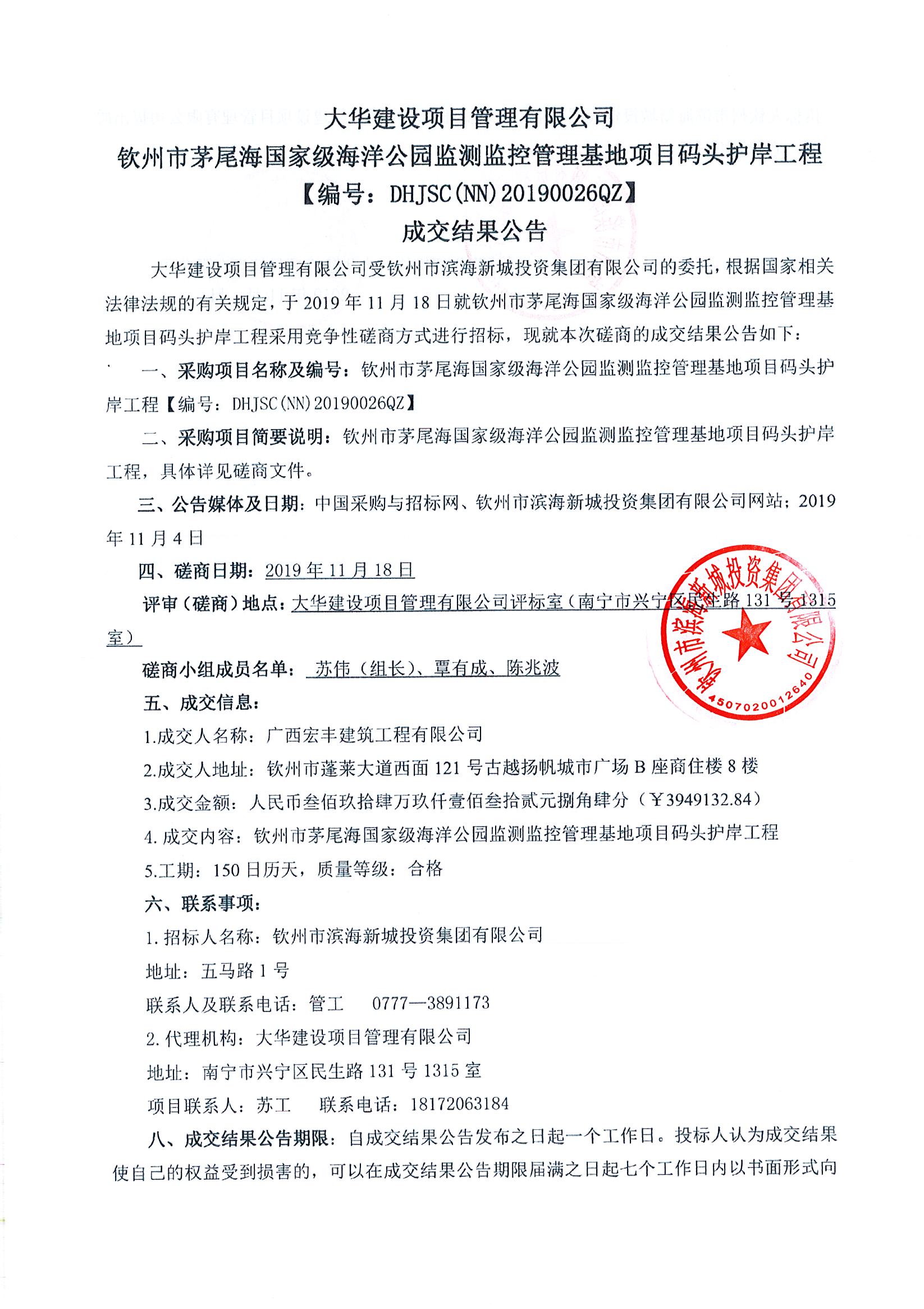 欽州市茅尾海國(guó)家級(jí)海洋公園監(jiān)測(cè)監(jiān)控管理基地項(xiàng)目碼頭護(hù)岸工程-成交結(jié)果公告