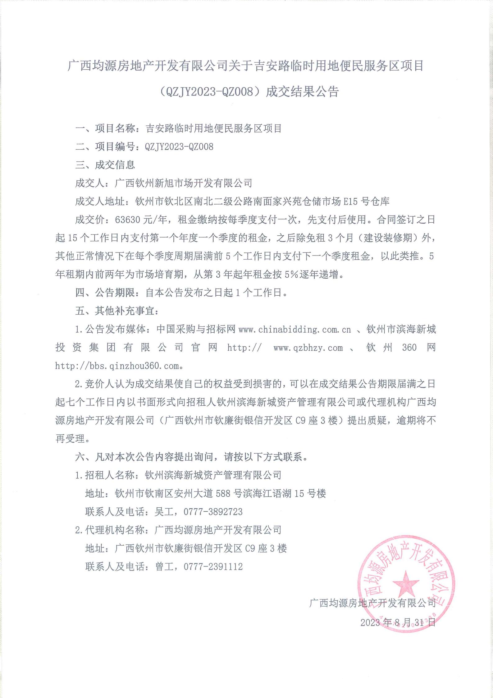關(guān)于吉安路臨時(shí)用地便民服務(wù)區(qū)項(xiàng)目成交結(jié)果公告