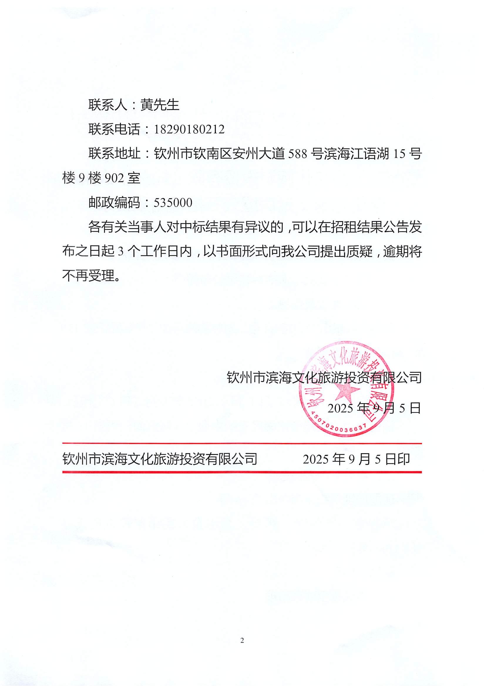 欽州市濱海文化旅游投資有限公司關(guān)于欽州市老街范圍1處房屋公開招租結(jié)果公示