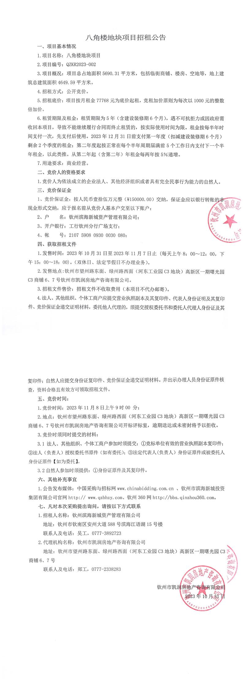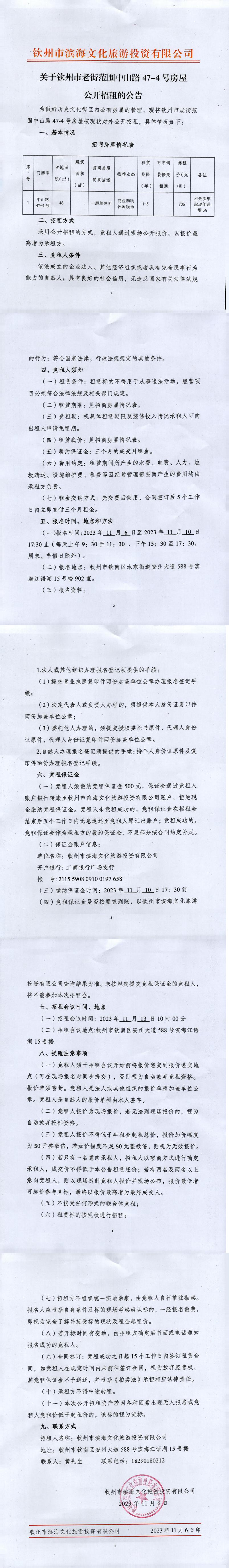 關于欽州市老街范圍中山路47號、二馬路17號、人民路118號等七處房屋公開招租的公告