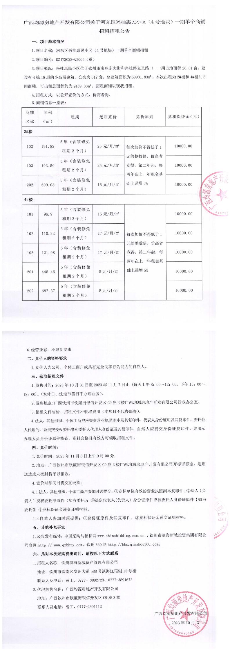 關于興桂惠民小區(qū)(4號地塊)二期商鋪招租公告