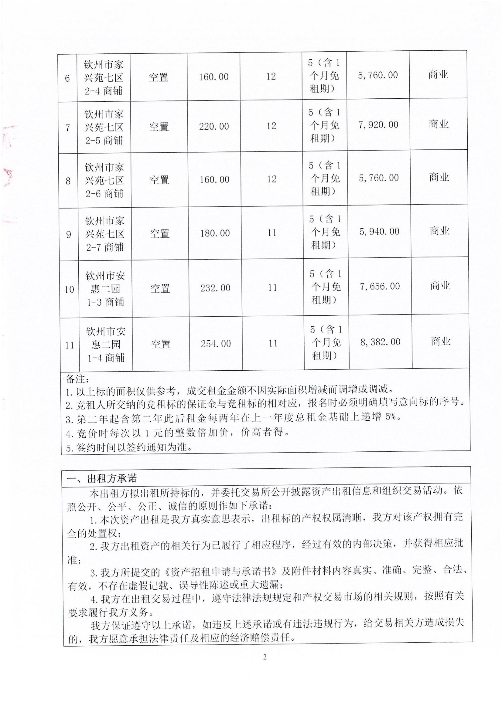 欽州市家興苑六區(qū)、家興苑七區(qū)、安惠二園共11間商鋪公開招租項目