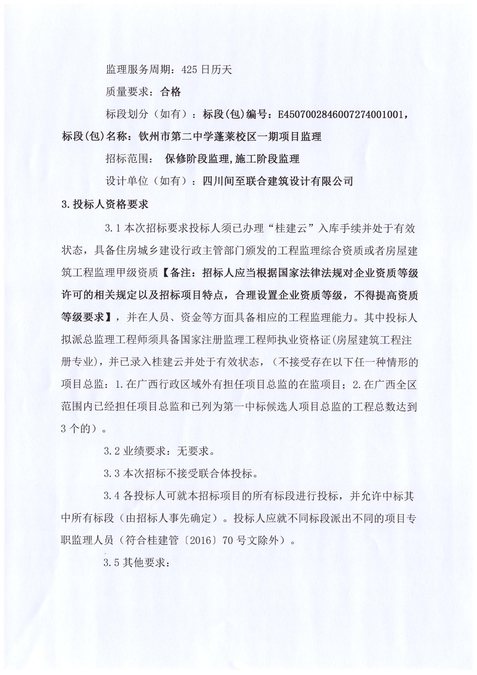 欽州市第二中學(xué)蓬萊校區(qū)一期項(xiàng)目監(jiān)理招標(biāo)公告